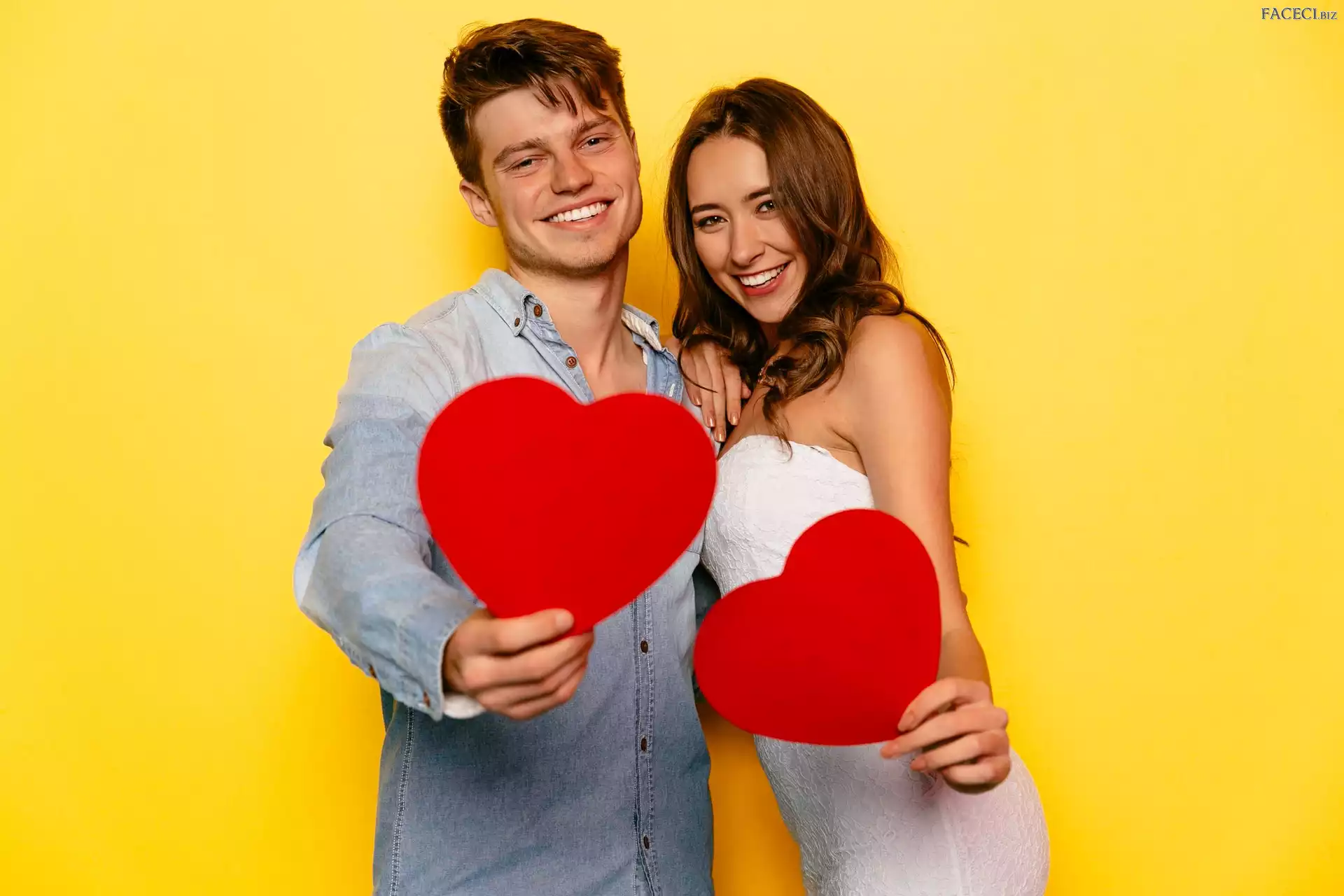 Mężczyzna, Para, Serca, Czerwone, Kobieta, Uśmiech - faceci.biz